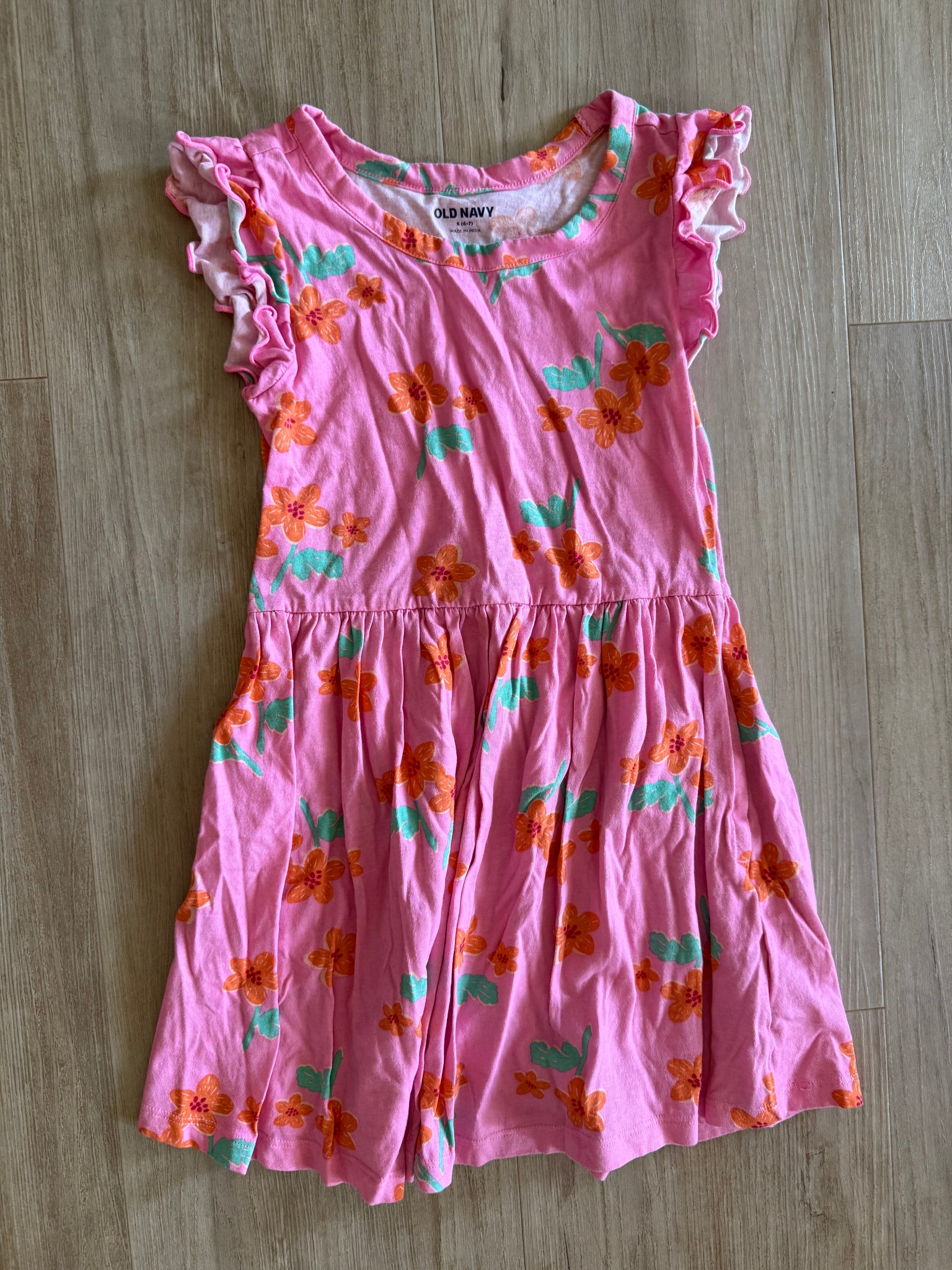 Old Navy Pink, Flower Flutter-Sleeve Dress, S(6-7)