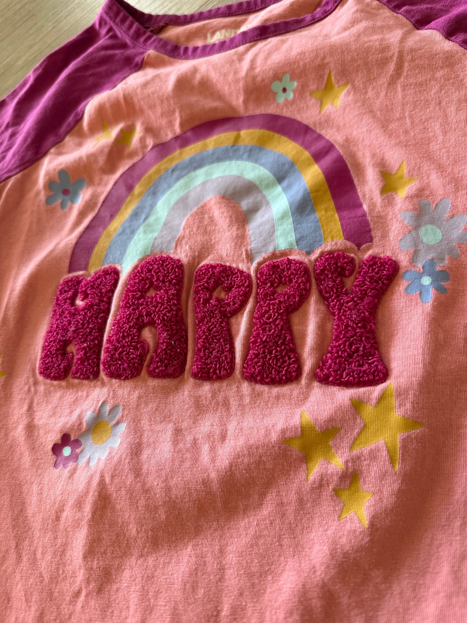 Lands End Fuzzy 'Happy' 3/4 Sleeve Top, M(8)